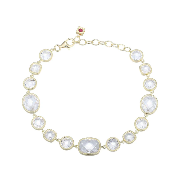 ELLE - Essence Collection - Sterling Silver & Yellow Gold Rhodium Plated 6.75"+1.25" CZ Bracelet