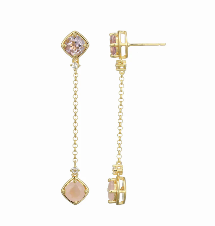 ELLE - Sway Collection - Sterling Silver & Yellow Gold Rhodium Plated Pink Amethyst, Rose...