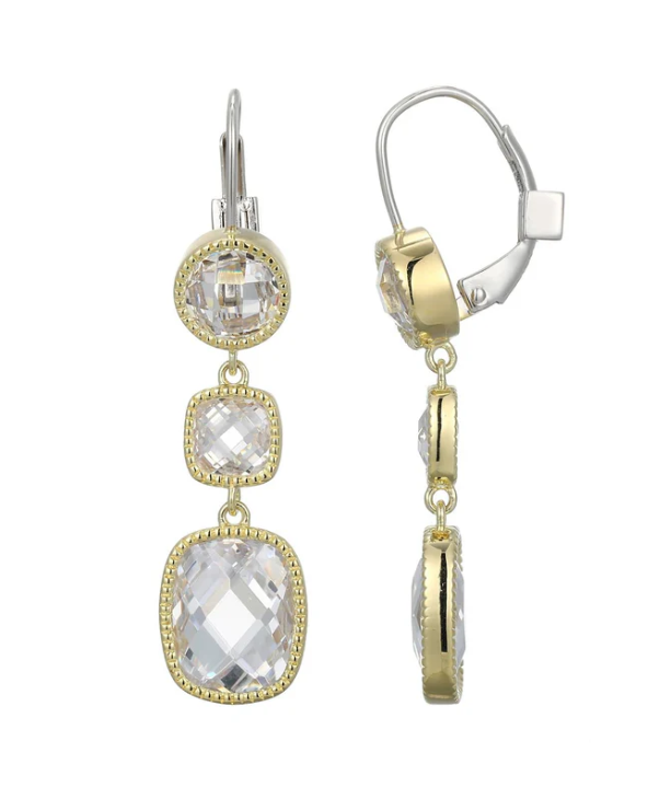ELLE - Essence Collection - Sterling Silver & Yellow Gold Rhodium Plated CZ Leverback Dangle...