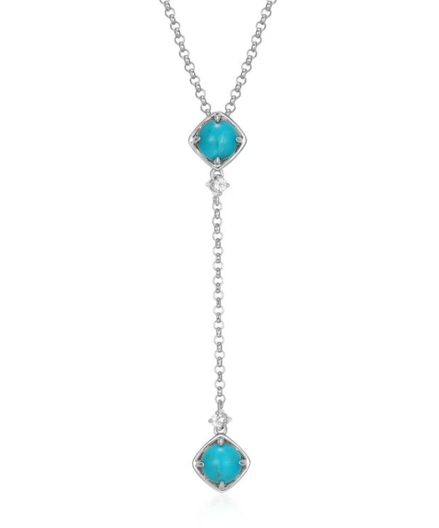 ELLE - Sway Collection - Sterling Silver Rhodium Plated 17"+3" Stabilized turquoise & White Topaz...