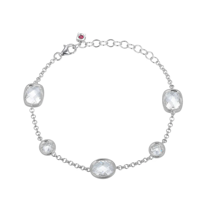 ELLE - Essence Collection - Sterling Silver Rhodium Plated 6.5"+1.5" CZ Station Bracelet