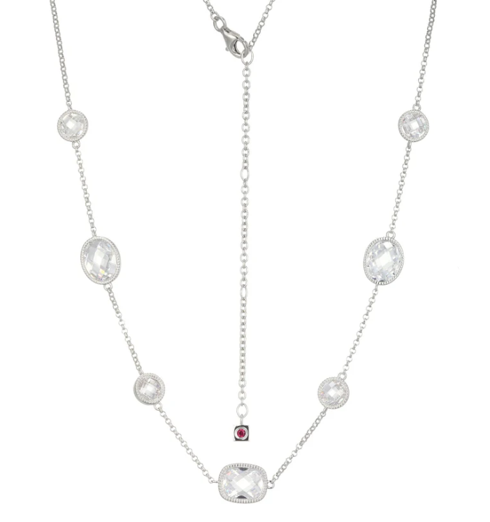 ELLE - Essence Collection - Sterling Silver Rhodium Plated 17"+3" CZ Station Necklace