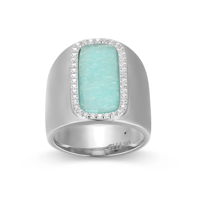 ELLE - Allure 2.0 Collection - Sterling Silver Rhodium Plated Amazonite & CZ Ring, Size...