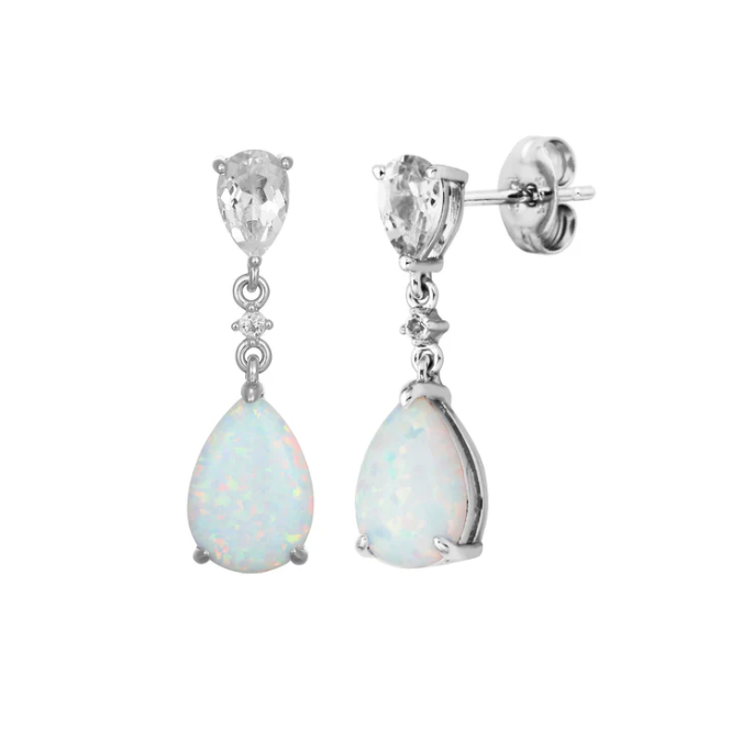 ELLE - Sway Collection - Sterling Silver Rhodium Plated Created Opal & White Topaz Dangle...