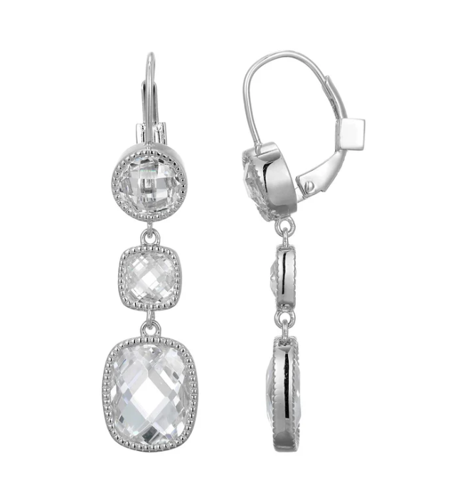 ELLE - Essence Collection - Sterling Silver Rhodium Plated CZ Dangle Leverback Earrings