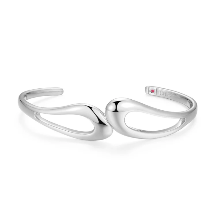 ELLE - Oasis Collection - Sterling Silver Rhodium Plate 6.5" Cuff Bangle Bracelet