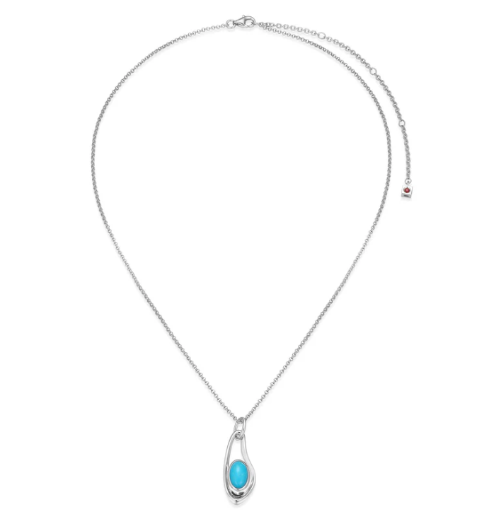 ELLE - Oasis Collection - Sterling Silver Rhodium Plated Stabilized Turquoise Drop Pendant on A...