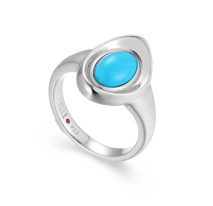 ELLE - Oasis Collection - Sterling Silver Rhodium Plated Stabilized Turquoise Ring, Size 7