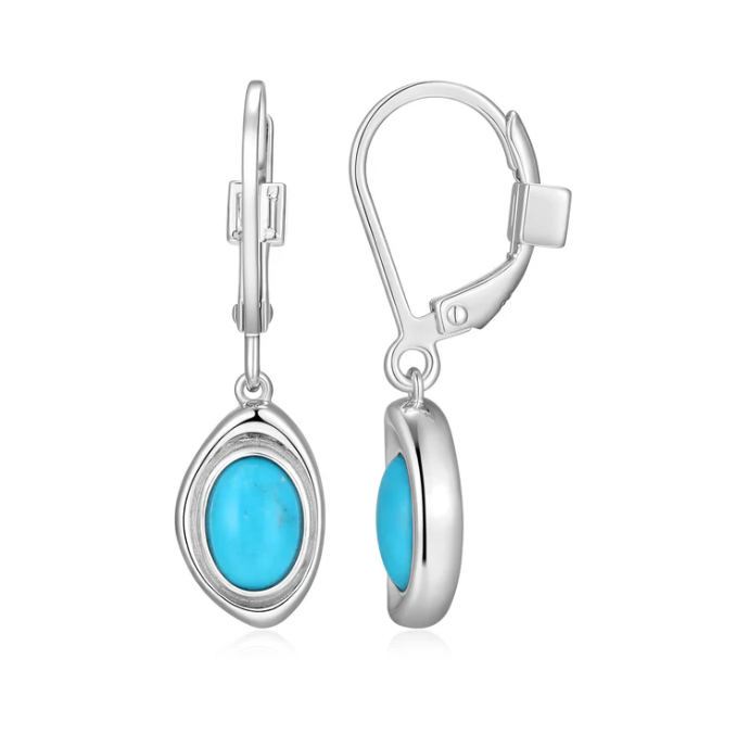 ELLE - Oasis Collection - Sterling Silver Rhodium Plated Stabilized Turquoise Leverback Drop Earrings