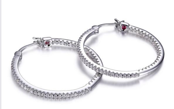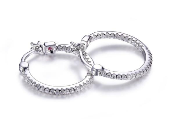 ELLE - Rodeo Drive Collection - Sterling Silver Rhodium Plated CZ Inside Out Hoop Earrings