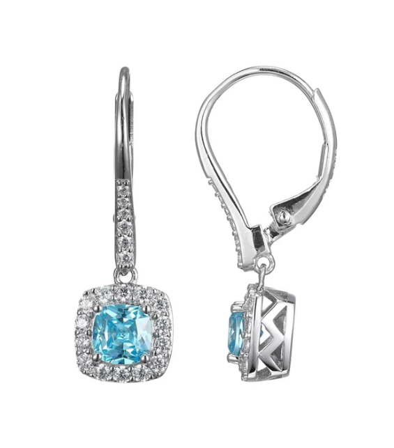 ELLE - Radiance Collection - Sterling Silver Rhodium Plated Cushion Cut Blue & Clear Cubic...