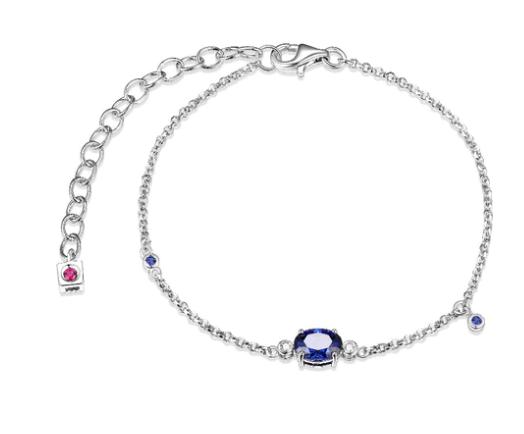 ELLE - Blue Star Collection - Sterling Silver Rhodium Plated 6.5"+2" Sideways Lab Created Oval...