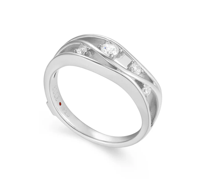 ELLE - Between Collection - Sterling Silver Rhodium Plated CZ Ring, Size 7
