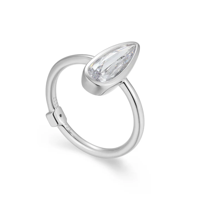 ELLE - Lustre Collection - Sterling Silver Rhodium Plated Tear Drop CZ Ring, Size 8