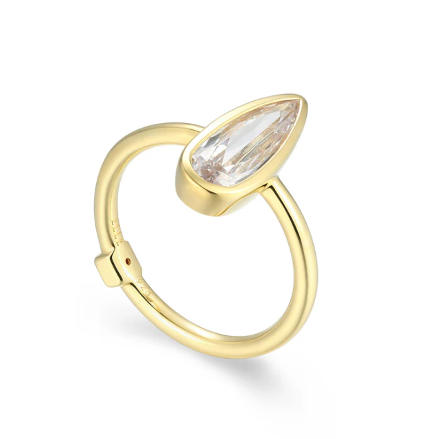 ELLE - Lustre Collection - Sterling Silver Yellow Gold Rhodium Plated Tear Drop CZ Ring,...