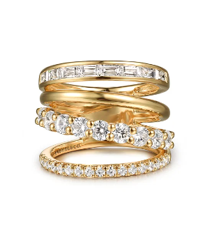 Gabriel & Co - Bujukan Collection - 14KT Yellow Gold Triple Row Chevron Diamond Ring,...