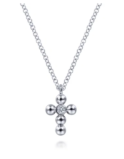 Gabriel & Co - Bujukan Collection - Sterling Silver 17.5" Diamond & Bujukan Bead Cross...