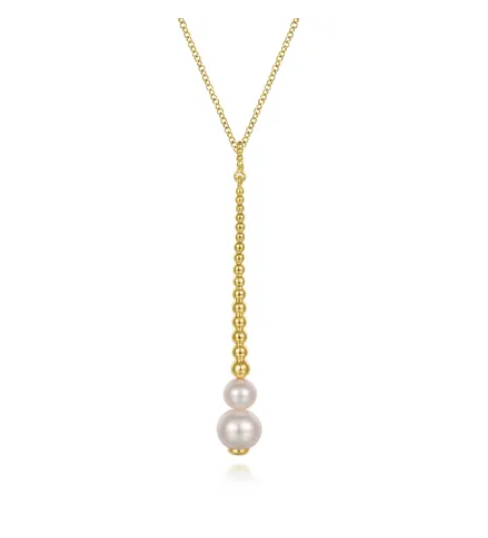 Gabriel & Co - Bujukan Collection - 14KT Yellow Gold 17.5" Bujukan Pearl Drop Necklace,...