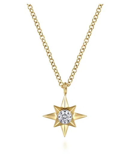 Gabriel & Co - Contemporary Collection - 14KT Yellow Gold 17.5" Diamond Starburst Pendant Necklace,...