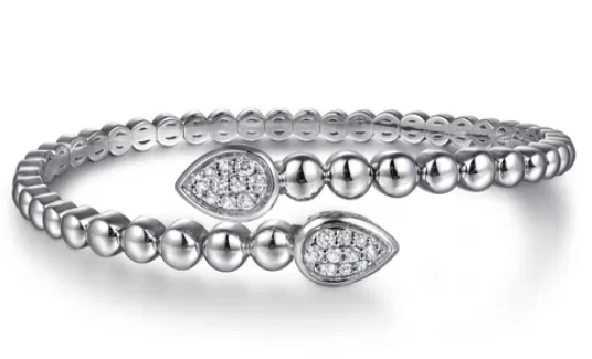 Gabriel & Co - Bujukan Collection - Sterling Silver 6.25" White Sapphire Bypass Bangle Bracelet,...
