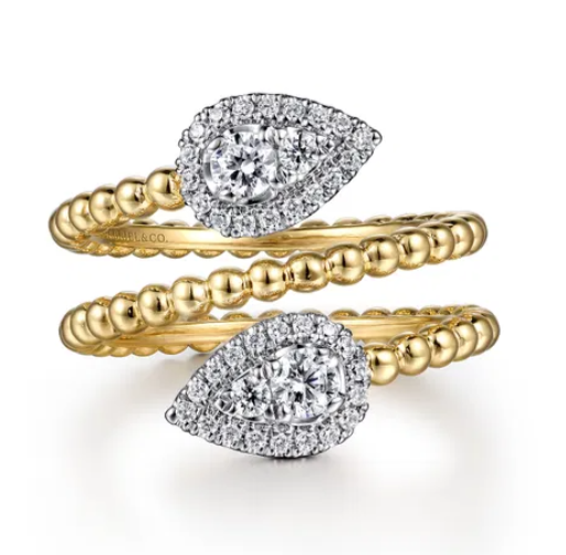 Gabriel & Co - Bujukan Collection - 14KT White-Yellow Gold Bujukan Wrap Ring with Teardrop...