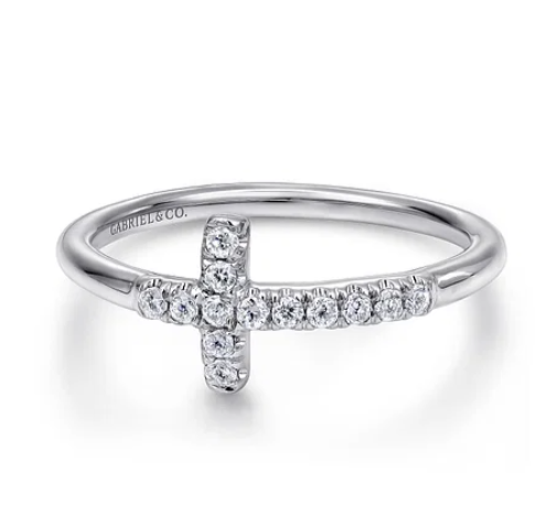14K White Gold 0.13ct. Cross Diamond Fashion Ring
