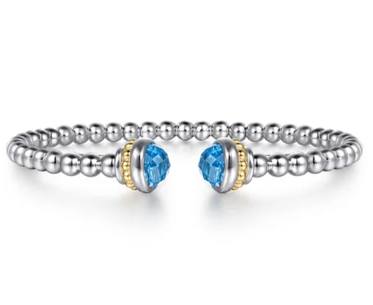 Gabriel & Co - Bujukan Collection - 14KT Yellow Gold & Sterling Silver 6" Blue...