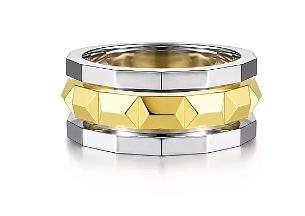 Gabriel & Co - Geo Collection - 14KT Two-Tone Men's Wide Faceted Ring in High...