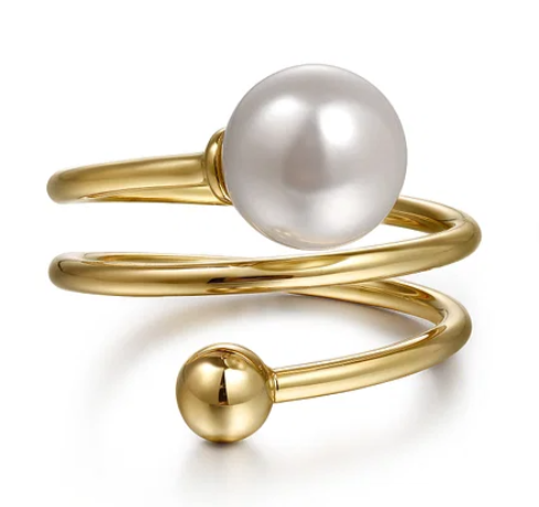 14K Yellow Gold 0.72ct. Bypass Pearl Ring