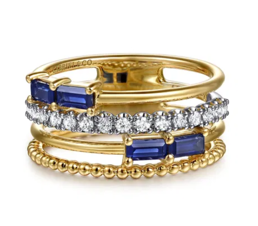 Gabriel & Co - Bujukan Collection - 14KT White & Yellow Gold Baguette Sapphire &...