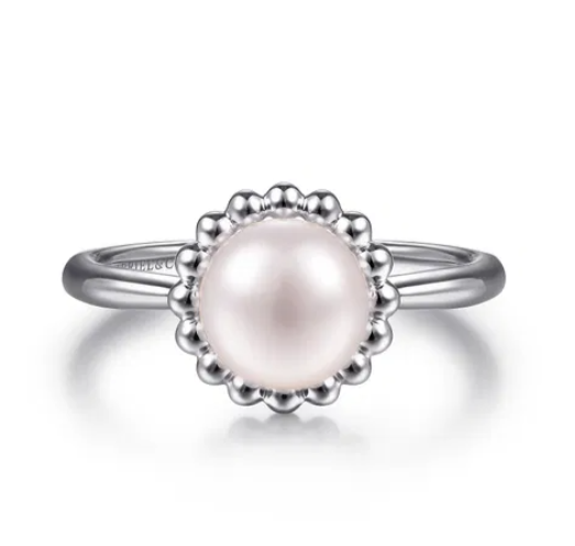 Gabriel & Co - Bujukan Collection - Sterling Silver Pearl Ring with Bujukan Beaded Halo,...
