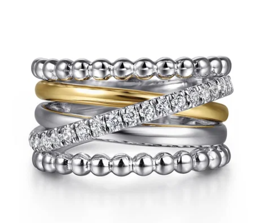 14K Two-tone 0.73ct. Easy Stackable Diamond Fashion Ring