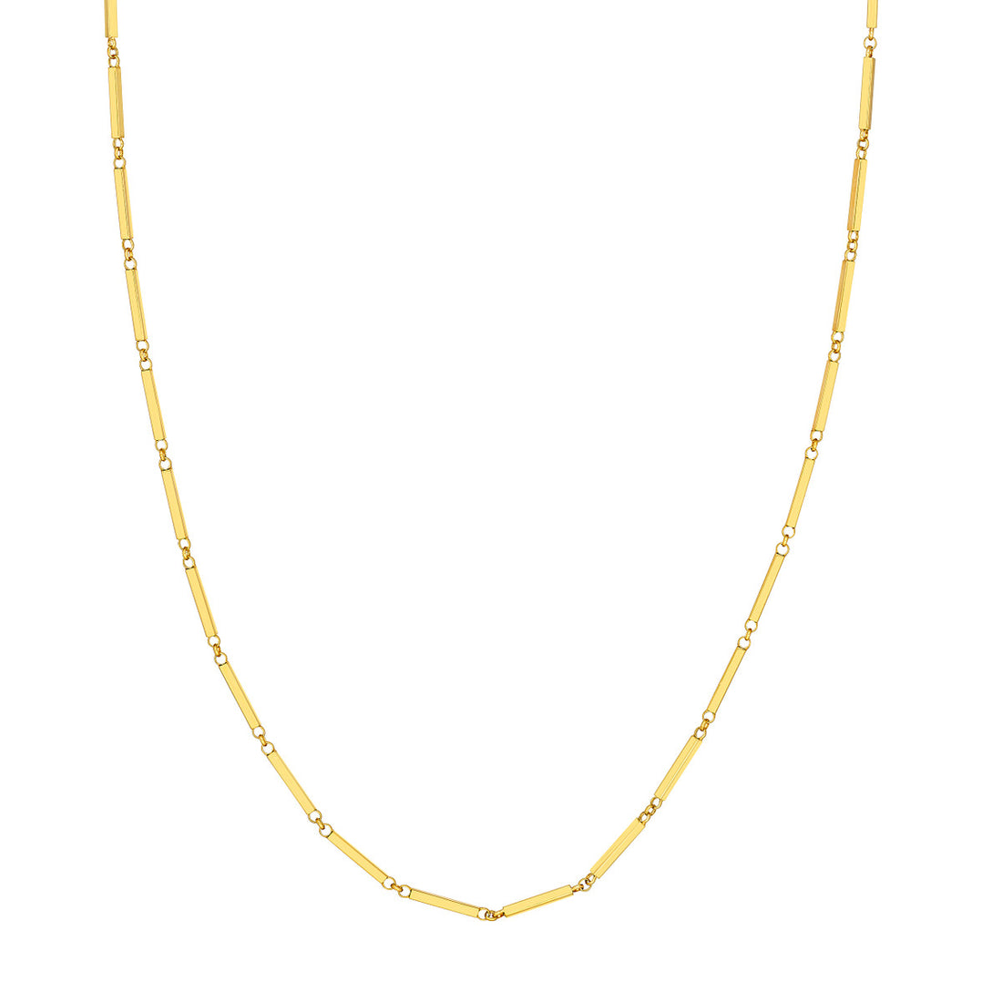 14KT Yellow Gold 18" Rectangle Bar Shaped Station Necklace