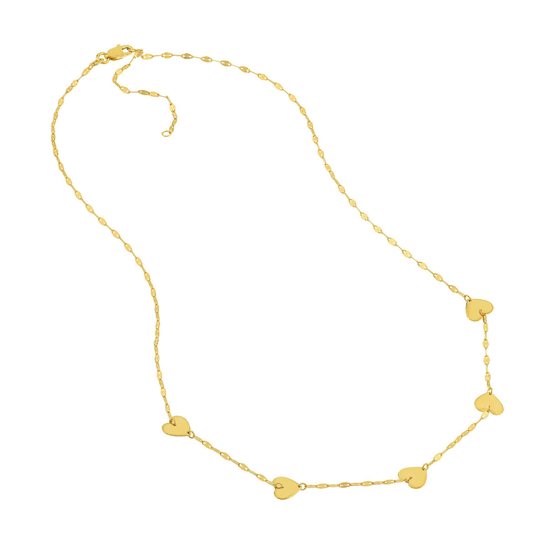 14KT Yellow Gold 18" Adjustable Five Heart Stations Necklace