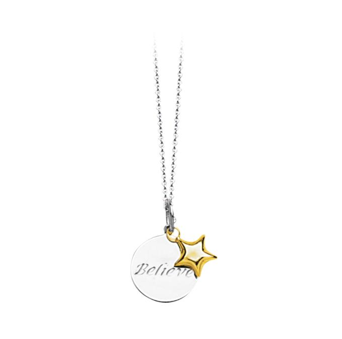 Sterling Silver & 14KT Yellow Gold 18" Believe Disk & Star Dangle Necklace