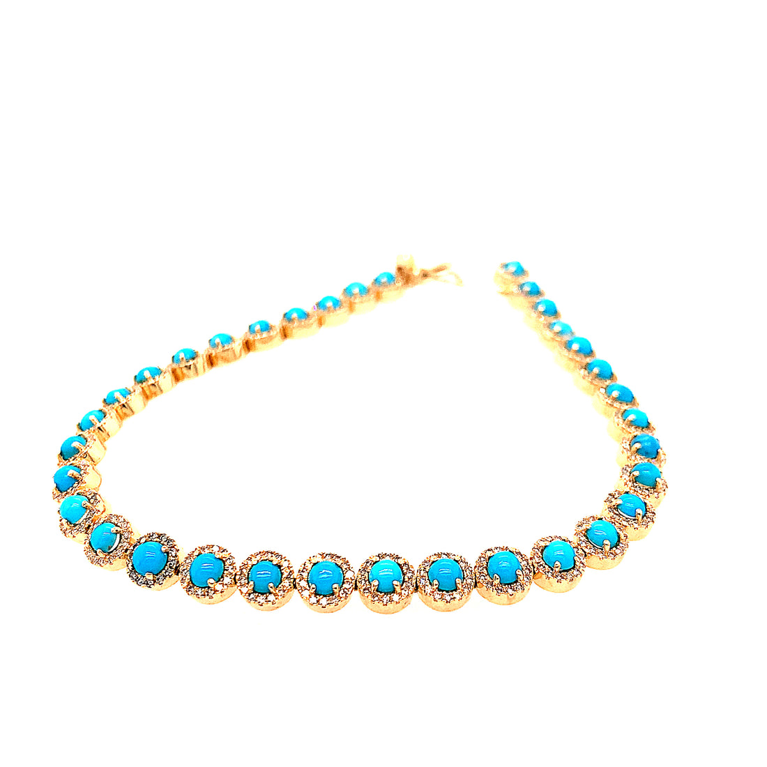14KT Yellow Gold 7" Turquoise & Diamond Bracelet, PS: 4.73ct., Dia: 1.23ct t.w.