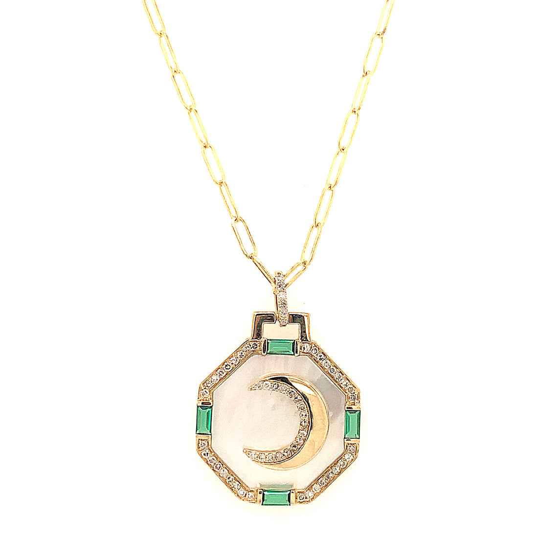 14K Yellow Gold 3.65ct. MOP, Emerald Necklace