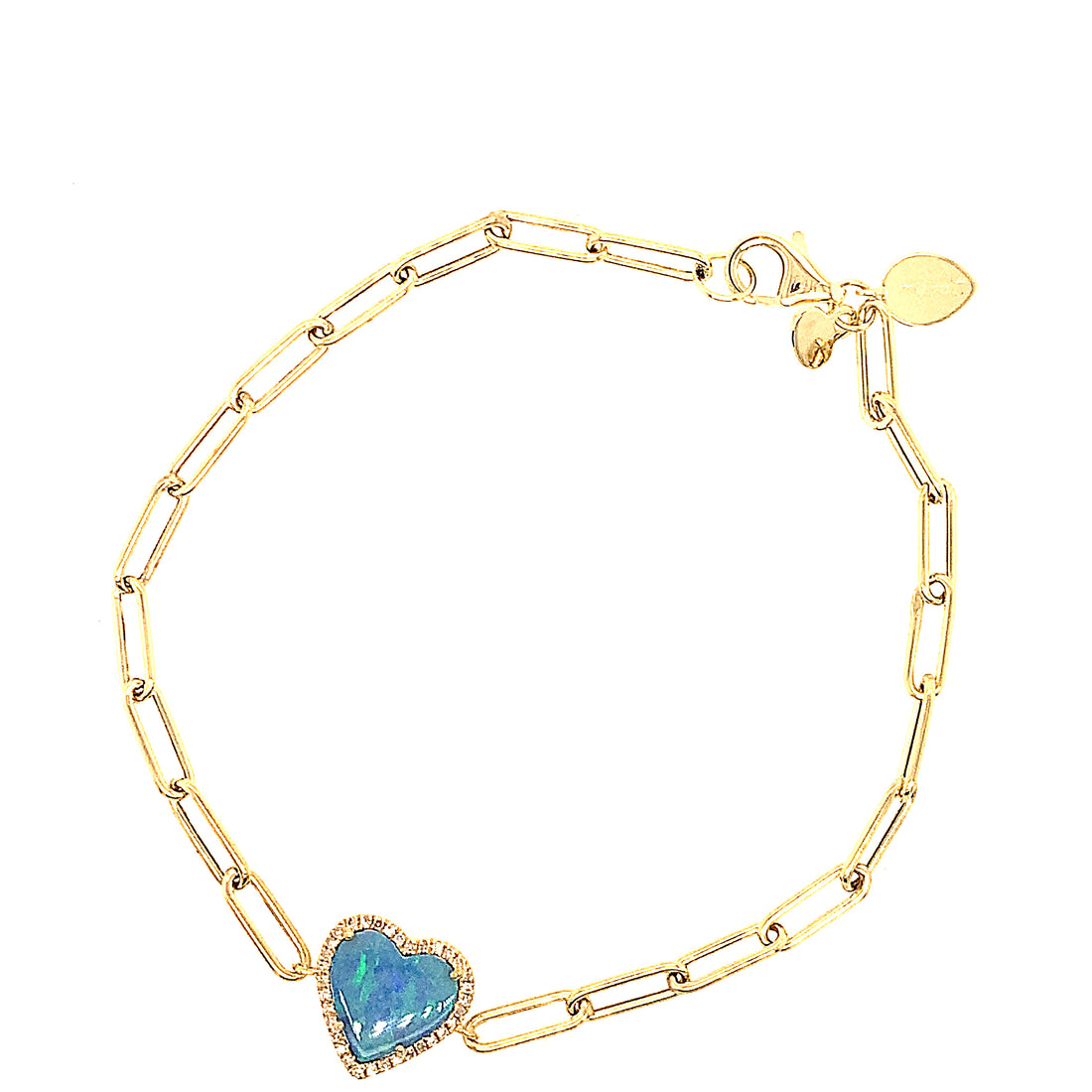 MeiraT - 14KT Yellow Gold 7" Heart Shaped Opal & Diamond Paper Clip Bracelet, OP:...