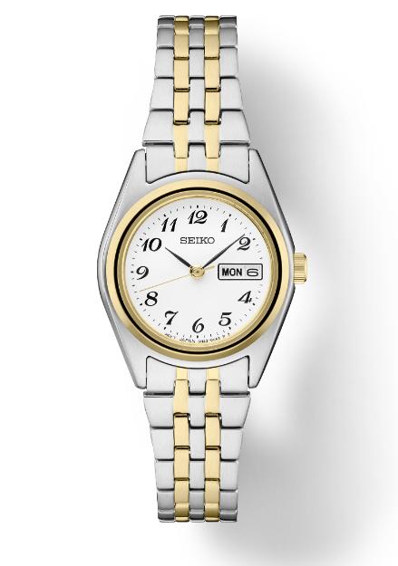 SEIKO - ESSENTIALS - Ladies Two-Tone Stainless Steel Quartz Watch with White Dial, Day/Date Calendar,...