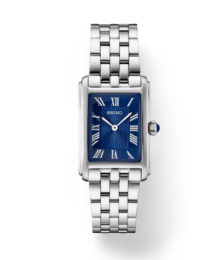 SEIKO - ESSENTIALS - Ladies Stainless Steel Quartz Watch with Patterned Blue Roman Numeral Dial,...