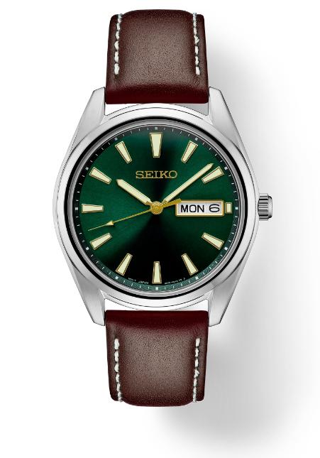 SEIKO - ESSENTIALS - Men's Stainless Quartz Watch with Green Sunray Dial with Gold Accents,...