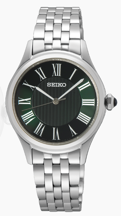 SEIKO - ESSENTIALS - Ladies Stainless Steel Quartz Watch with Green Dial, Roman Numerals, Sapphire...