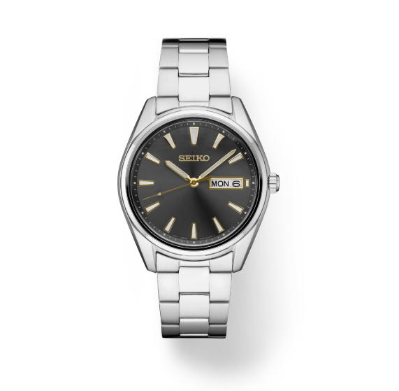SEIKO - ESSENTIALS - Men's Stainless Steel Quartz Watch with Dark Gray Dial with Sunray...