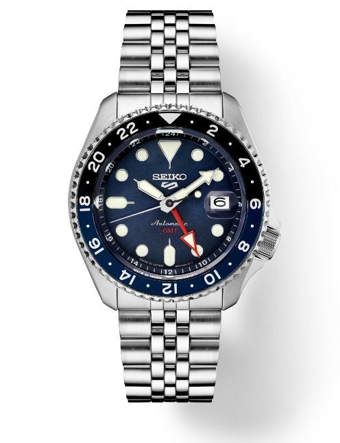 SEIKO - 5 SPORTS - Stainless Steel Automatic Watch with Blue Dial, GMT with Manual...