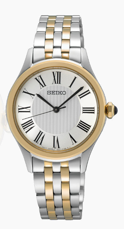 SEIKO - ESSENTIALS - Ladies Two-Tone Stainless Steel Quartz Watch with Silver Roman Numeral Dial,...