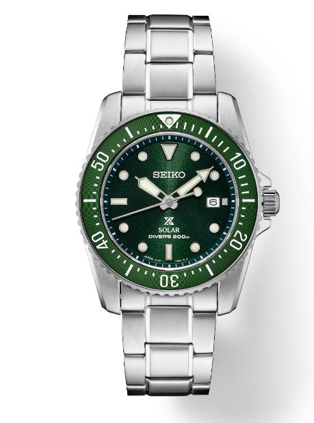 SEIKO - PROSPEX - Men's Stainless Steel Solar Diver's Watch with Green Sunray Finish Dial,...