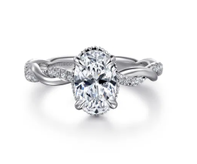 Gabriel & Co - 14KT White Gold Semi-Mount Oval Halo Diamond Ring, Dia: 0.25ct t.w.,...