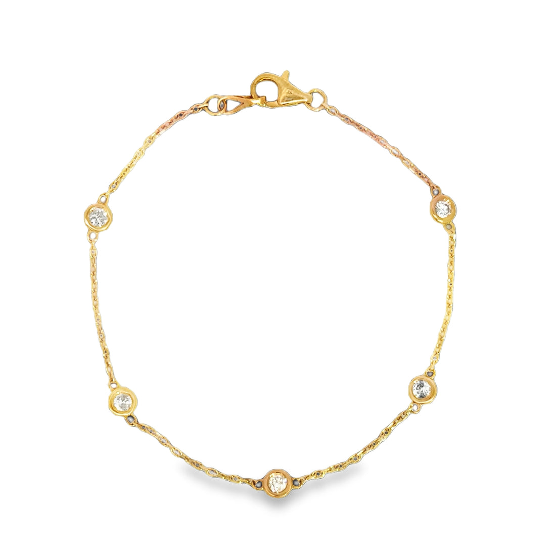 14KT Yellow gOld 7" Diamond By The Yard Bracelet, Dia: 0.50ct t.w., G-VS