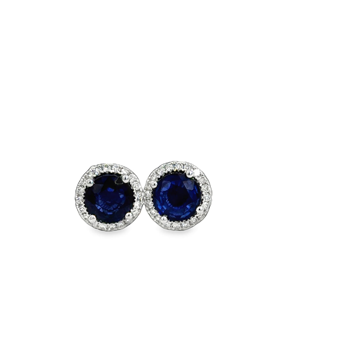 14KT White Gold Sapphire & Diamond Halo Earrings, SA: 2.01ct., Dia: 0.20ct t.w., G-VS