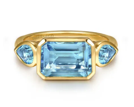 Gabriel & Co - Color Collection - 14KT Yellow Gold Swiss Blue Topaz Signet Ring,...